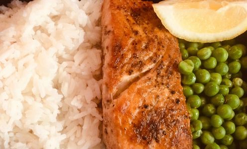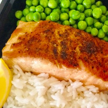 Seared Salmon, Jasmine Rice, Vegetable